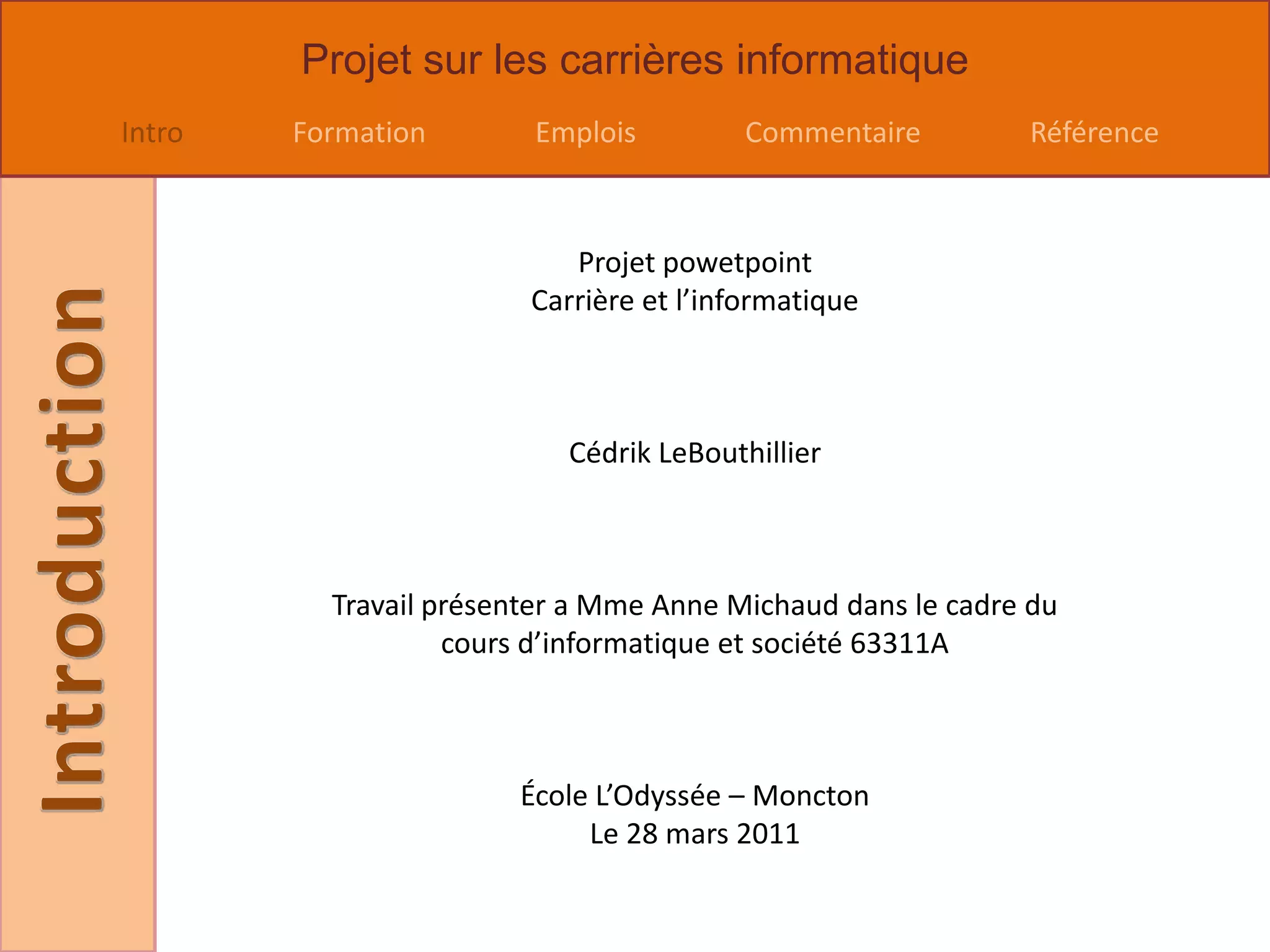 Le document présente différentes carrières dans le domaine de l'informatique et de l'animation, incluant les formations nécessaires et les salaires associés. Il aborde les métiers tels qu'animateur par ordinateur, concepteur de sites web, contrôleur aérien et technicien du son, tout en exprimant les préférences personnelles de l'auteur concernant ces emplois. Enfin, il fournit des liens vers des ressources en ligne pour plus d'informations sur chaque carrière.