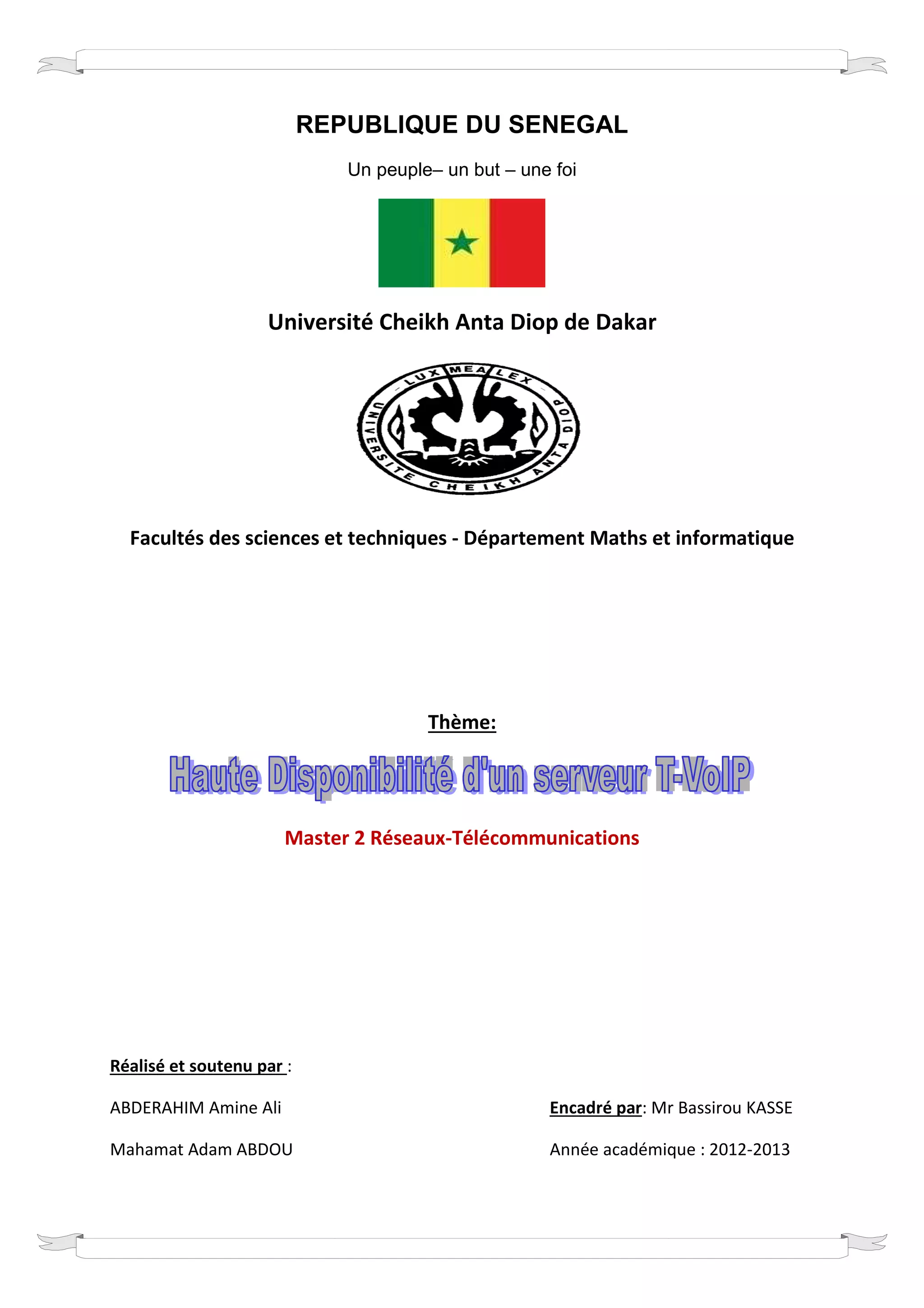 Le document traite de la téléphonie sur IP (ToIP) et de la voix sur IP (VoIP), expliquant les technologies, protocoles, et logiciels associés, notamment Asterisk, un logiciel libre pour la gestion des communications voix. Il détaille l'installation et la configuration d'Asterisk ainsi que les problèmes de disponibilité des serveurs, et évoque la haute disponibilité et le clustering pour garantir des services fiables. L'étude met en évidence l'importance de la convergence entre les données et la voix et expose les avantages de l'utilisation de la VoIP pour les entreprises.