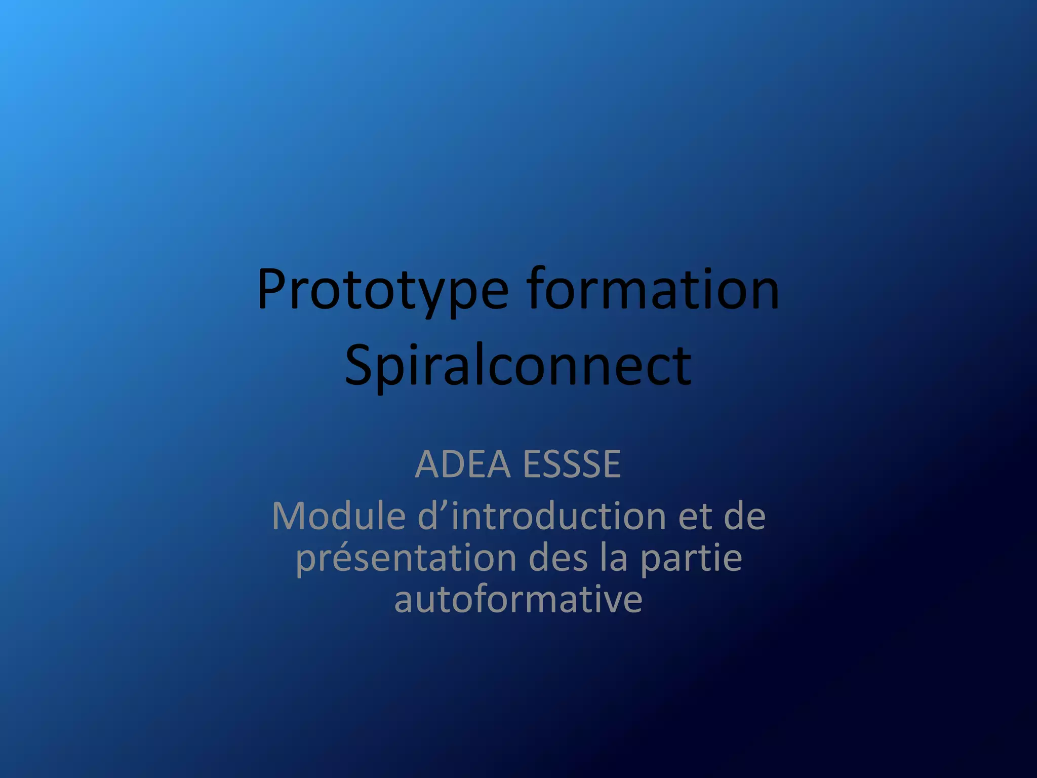 Le document présente un prototype de formation sur la plateforme Spiral Connect, comprenant des modules d'introduction sur l'utilisation courante de l'environnement graphique et des outils collaboratifs. Les participants apprendront à se familiariser avec la plateforme, créer des supports pédagogiques, et gérer les cours et les étudiants. Chaque chapitre de la formation est conçu pour durer environ 15 minutes, abordant divers aspects de l'utilisation efficace de Spiral Connect.