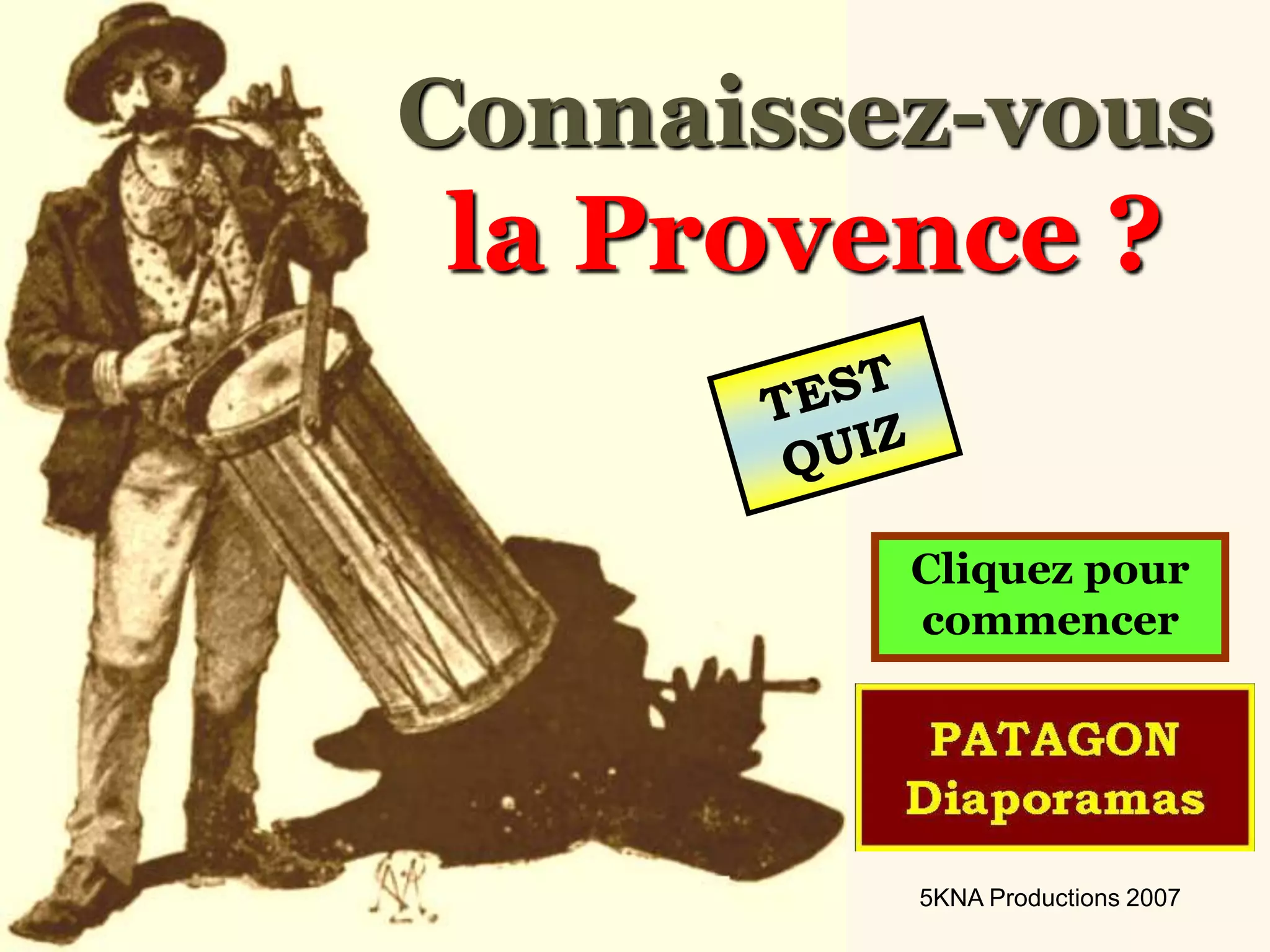 Le document propose un quiz sur la Provence, abordant des thèmes variés tels que la géographie, l'histoire, et la culture régionale. Il inclut des questions sur des lieux emblématiques, des personnalités historiques et des événements marquants liés à la région. Les réponses aux questions illustrent la richesse et la diversité du patrimoine provençal.