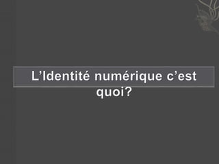 Le document traite des traces numériques laissées par les utilisateurs sur Internet, distinguant celles intentionnelles, comme les informations de profil, des traces inconscientes, telles que l'historique de navigation. Il met en lumière les risques associés à ces données, notamment le vol d'identité, l'utilisation non consentie des informations personnelles et le cyber-harcèlement. L'identité numérique est ainsi présentée comme un ensemble complexe d'éléments pouvant affecter la réputation d'un individu.