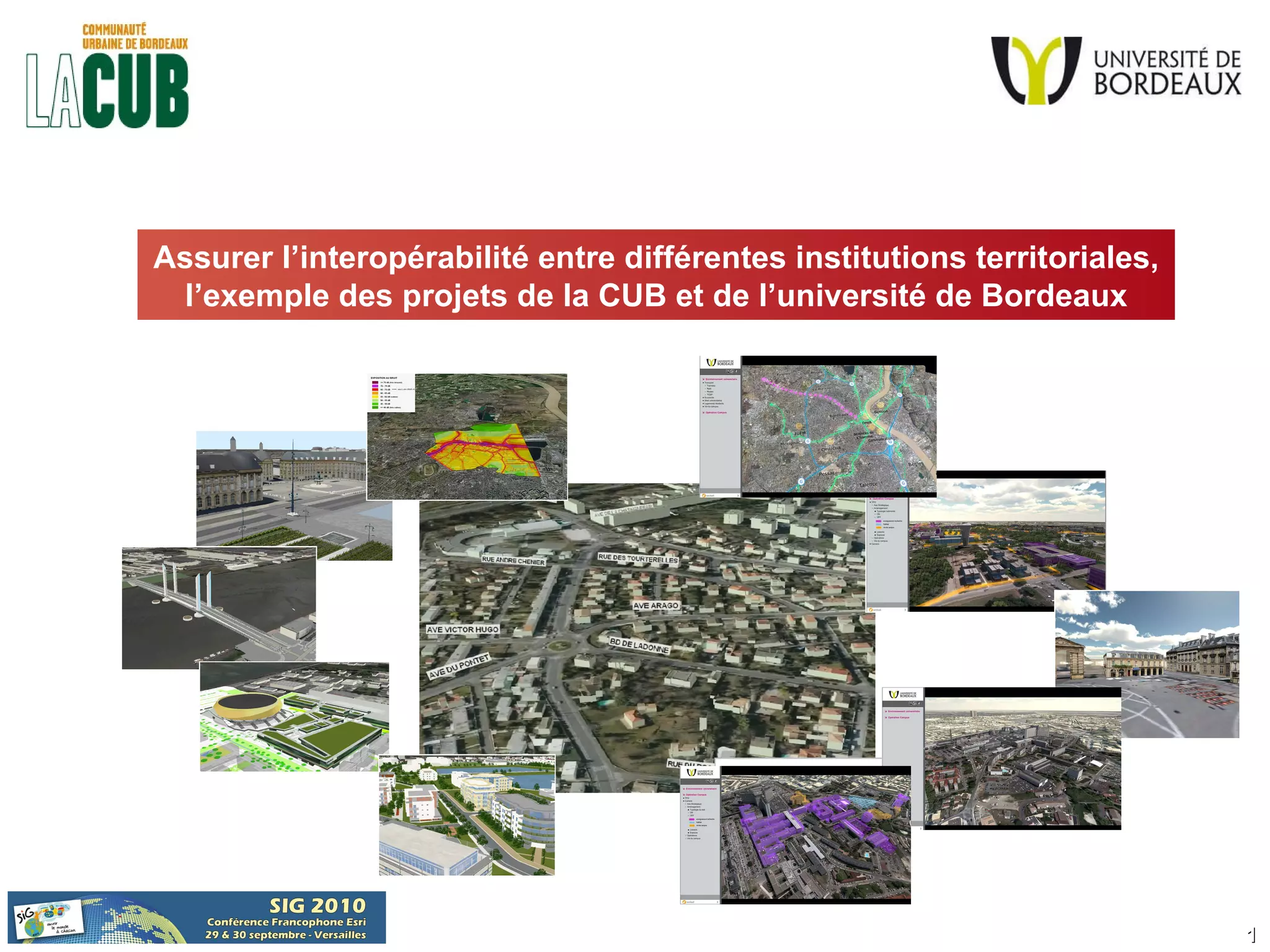 Le projet Agglo 3D, initié en 2008 par la communauté urbaine de Bordeaux, vise à créer une maquette numérique interactive du territoire pour favoriser l'interopérabilité entre les institutions territoriales. Il comprend la modélisation en 3D, l'aide à la décision et la participation citoyenne à travers différents projets d'aménagement. Le projet teste diverses applications et utilise des technologies avancées pour représenter fidèlement le territoire et engager les citoyens.
