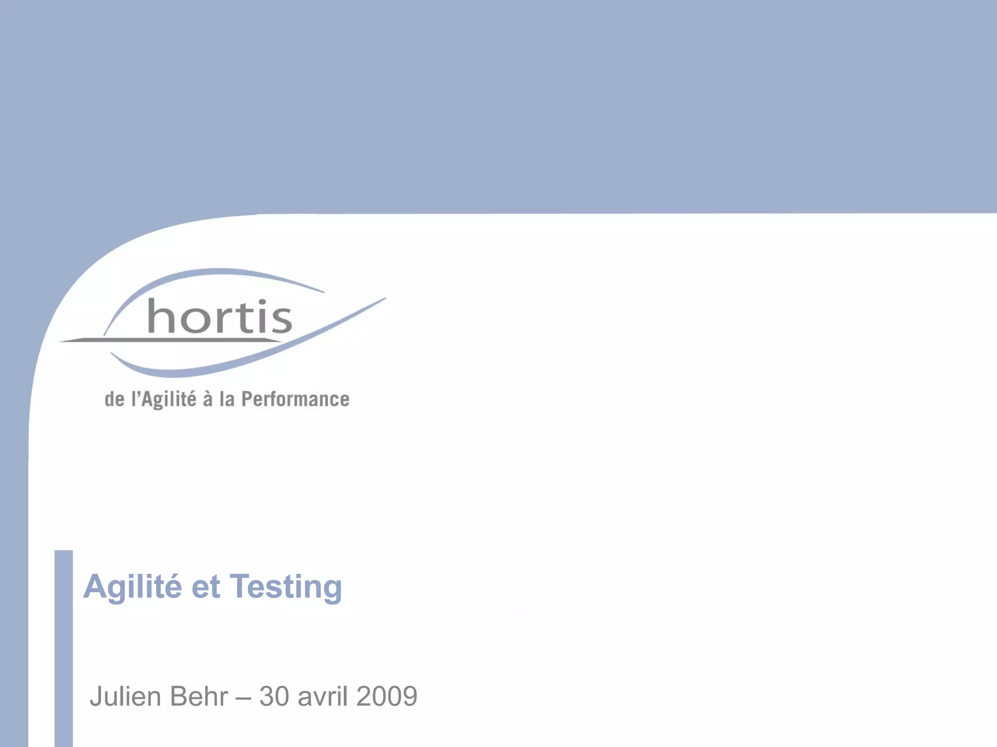 Le document traite des pratiques de test dans un contexte agile, soulignant l'importance d'intégrer les tests dès le début du processus de développement. Il aborde différents aspects tels que la planification des tests, l'automatisation et la participation de toute l'équipe, tout en comparant les approches agiles et classiques. Enfin, il souligne la nécessité de s'adapter aux exigences changeantes et d'améliorer continuellement la qualité du produit.
