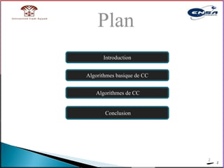 Le document présente les mécanismes de contrôle de congestion (CC) dans TCP, en expliquant les algorithmes fondamentaux comme le slow start, la congestion avoidance et le fast recovery. Il décrit comment ces algorithmes s'adaptent à la bande passante disponible et réagissent à la perte de paquets pour éviter la saturation du réseau. Plusieurs variantes de TCP, telles que Reno et Vegas, sont également abordées, soulignant leur utilisation dans divers contextes de réseau.