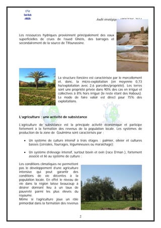 L'association Awiceds se concentre sur l'analyse de l'environnement socio-économique et physique de la commune rurale Gheris Es-Soufli, caractérisée par un climat aride et des ressources naturelles limitées. L'agriculture de subsistance y est l'activité économique principale, mais le niveau de vie est bas et le taux de pauvreté élevé dans la région. Malgré ces défis, des opportunités de développement existent grâce à la diversité écologique, aux infrastructures en place, et à l'engagement d'organisations locales.