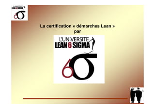 Le document traite de la certification des démarches lean management, visant à améliorer l'efficacité des entreprises en éliminant les gaspillages et en optimisant les processus. Il présente un référentiel de certification qui inclut des aspects tels que l'organisation, l'autonomie des équipes, et la mise en place de standards pour garantir la performance. Le processus de certification comprend plusieurs niveaux et se veut une validation rigoureuse des compétences dans le domaine d'amélioration continue.