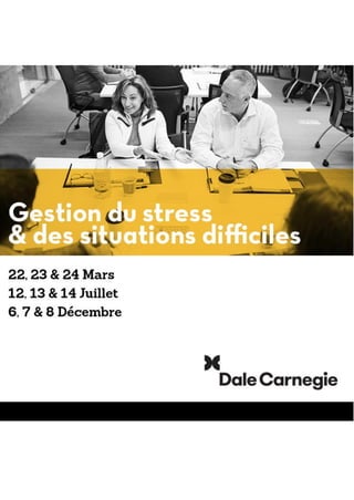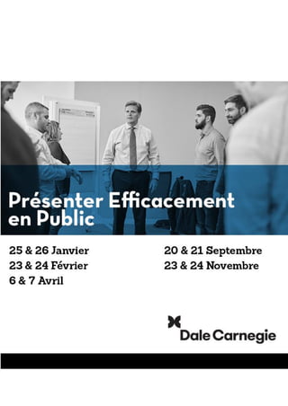 Dale Carnegie Training propose des formations en leadership, communication, et management, permettant d'améliorer les performances des collaborateurs dans plus de 90 pays. La méthode consiste en un processus en quatre étapes visant à développer des compétences pratiques et durables, avec un accent sur la motivation et l'engagement des participants. Les formations comprennent diverses approches, allant des sessions en ligne aux programmes intensifs, et sont conçues pour répondre aux besoins spécifiques des entreprises.