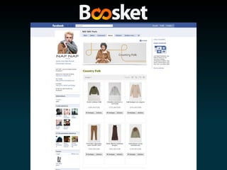 Le document traite de l'intégration du e-commerce avec Facebook, mettant en avant la facilité d'utilisation pour promouvoir des offres personnalisées. Il évoque l'importance des réductions et des offres exclusives pour fidéliser les fans. Enfin, il mentionne la disponibilité de cette solution dans plusieurs langues pour le shopping social.