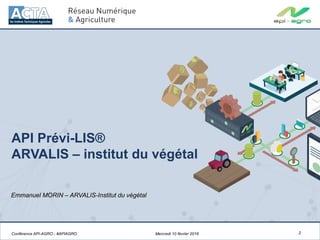 Le document présente les activités et objectifs de l'Arvalis - Institut du Végétal, qui vise à améliorer la compétitivité des exploitations agricoles en France. Il détaille la plateforme prévi-lis® et ses évolutions, permettant une surveillance des stades et des maladies des cultures à l'échelle des parcelles. L'institut s'engage à diffuser des informations pertinentes et à innover pour répondre aux besoins des agriculteurs et des filières.