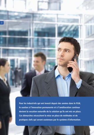 Le document aborde les fondations d'une démarche d'innovation et d'amélioration continue à travers le PLM, soulignant son rôle central dans la gestion des projets et la capitalisation des connaissances. Il met en avant la nécessité d'intégrer des méthodes clés et des systèmes d'information pour soutenir l'évolution des produits et répondre rapidement aux exigences du marché. Enfin, le texte insiste sur l'importance d'une transformation organisationnelle et stratégique pour renforcer l'efficacité et l'agilité de l'entreprise face aux défis contemporains.