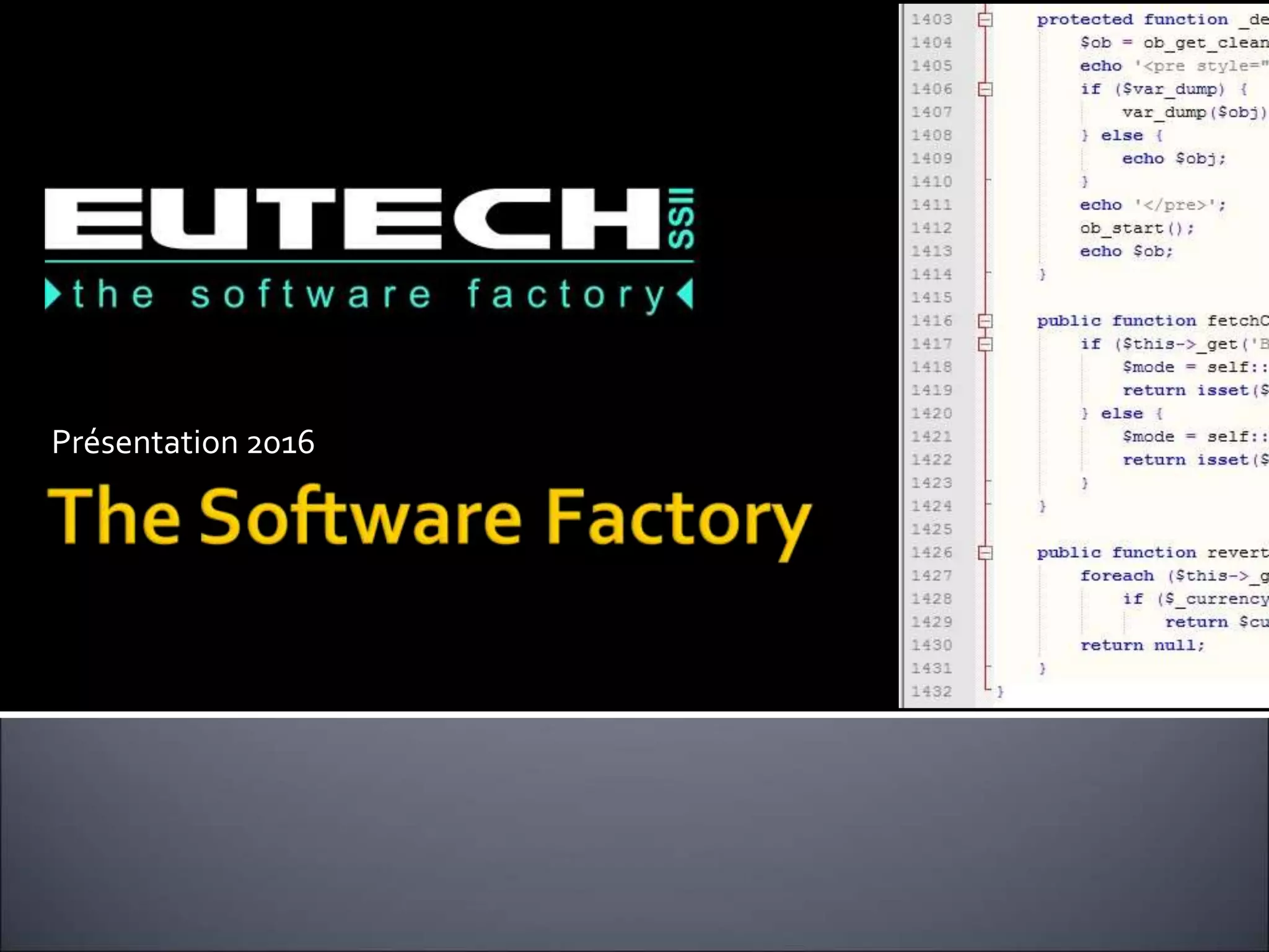Le document présente une entreprise d'ingénierie logicielle créée en 2004, spécialisée dans le développement d'applications sur mesure et le conseil, avec une équipe de 10 personnes. Elle a développé des solutions pour divers clients, y compris des applications mobiles et des interfaces web, en utilisant diverses technologies et frameworks. L'entreprise met un accent particulier sur la qualité et l'amélioration continue de ses processus de développement.