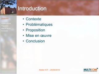 Le document traite de l'interopérabilité des réseaux dans le cadre des bâtiments intelligents en mettant l'accent sur la nécessité d'une abstraction des objets communicants. Il propose la mise en place de passerelles de services et l'utilisation de modèles normalisés, tels que KNX, pour améliorer la gestion des différentes applications. La conclusion souligne la diversité des solutions et l'importance d'une approche intégrée pour optimiser le confort et l'efficacité énergétique.