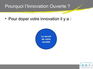 Pierre Bonnard discute de l'importance de l'innovation ouverte, qui permet d'accéder à une vaste connaissance externe non présente dans les entreprises. Le document aborde les méthodes de mise en œuvre de cette innovation, incluant la recherche d'experts et la gestion de la propriété intellectuelle. Enfin, il souligne les outils nécessaires pour naviguer dans ce processus tout en protégeant les intérêts des entreprises.