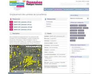 Le document présente l'initiative d'open data à Montpellier, détaillant le cadre législatif et les objectifs de cette démarche visant à favoriser la transparence et l'innovation. Depuis son lancement en 2011, Montpellier a publié plus de 100 jeux de données variées, soutenant des projets collaboratifs et thématiques autour de l'utilisation des données publiques. Les initiatives ont pour but de répondre aux défis urbains et d'encourager la participation citoyenne dans la collecte et l'analyse des données.