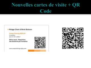 Le document présente l'utilisation des QR codes comme un moyen moderne et sûr pour les employés de partager des informations. Il souligne les avantages en termes de simplicité, clarté et efficacité, notamment en situations d'urgence où les urgentistes peuvent accéder rapidement aux renseignements médicaux. Les QR codes peuvent être intégrés dans divers formats, offrant un accès rapide à des informations détaillées.