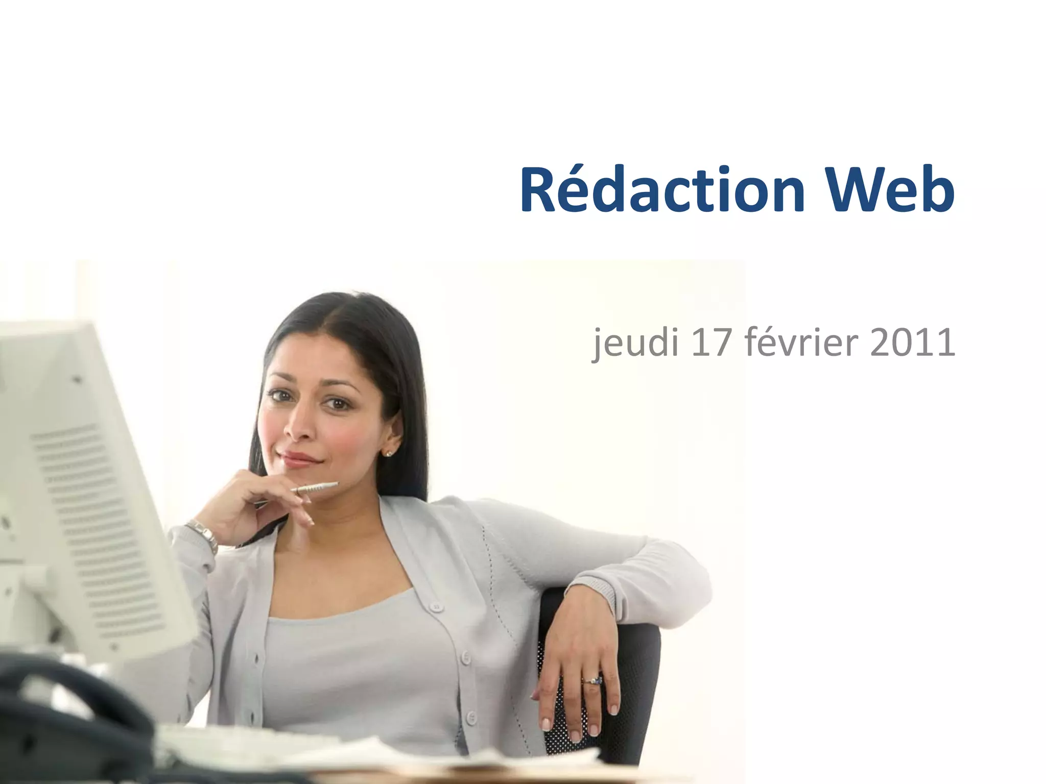 Ce document traite des principes de la rédaction web, en mettant l'accent sur l'adaptation de la rédaction au comportement des internautes, notamment par le biais du découpage de l'information, de l'accessibilité, et de l'utilisation de visuels. Il présente également des stratégies pour améliorer la pertinence et la cohérence des contenus, tout en évitant le jargon et en s'assurant que les informations clés sont faciles à trouver. Enfin, il souligne l'importance de l'intégration de visuels pour rendre le contenu plus engageant et compréhensible.