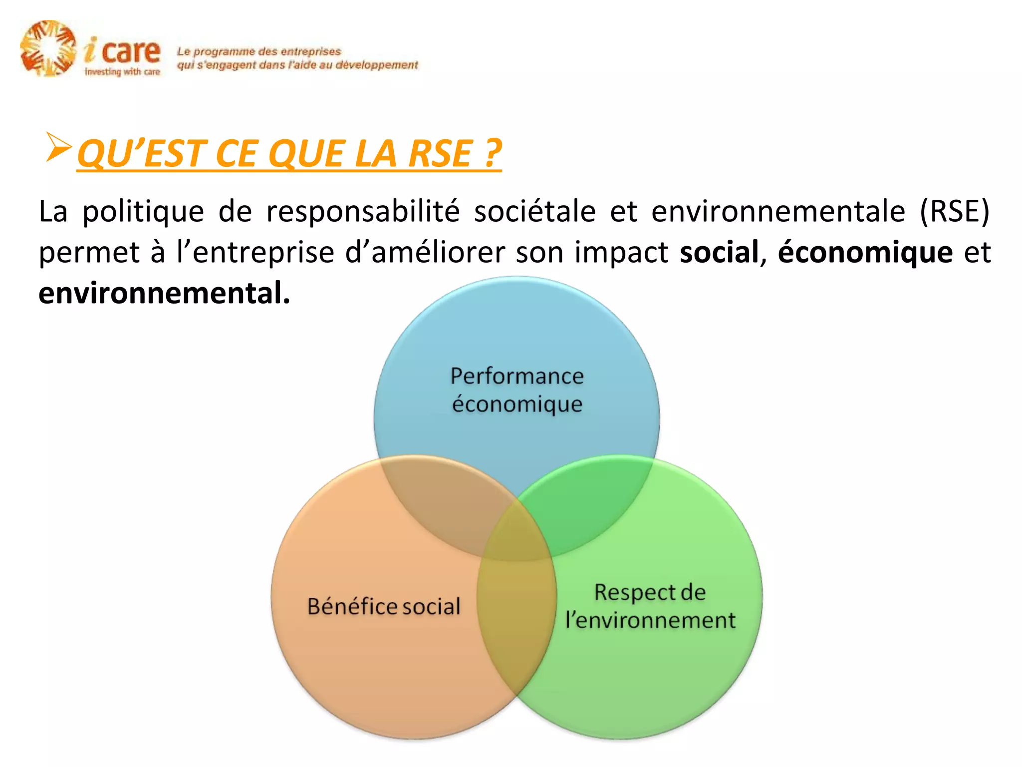 La Responsabilité Sociétale et Environnementale (RSE) permet aux entreprises d'améliorer leur impact social, économique et environnemental tout en créant des avantages concurrentiels. Les entreprises dans les pays du Sud font face à divers défis, et collaborer avec Care offre des opportunités d'impact positif durable et de savoir-faire adapté aux réalités locales. Ce partenariat aide à intégrer les communautés dans la chaîne de valeur tout en maîtrisant les risques et en explorant de nouveaux marchés.