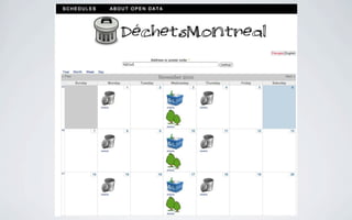 Montréal Ouvert est une initiative visant à promouvoir l'accès aux données civiques de la région de Montréal, visant à augmenter l'engagement citoyen et à favoriser l'innovation. Le document souligne l'importance de la mise en place d'une politique de données publiques accessibles, basées sur des formats ouverts et centralisés, afin de créer une métropole numérique. Il présente également des exemples concrets et des bénéfices économiques liés à l'ouverture des données, ainsi que les prochaines étapes pour soutenir cette initiative.