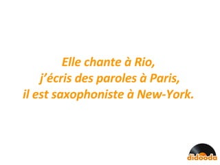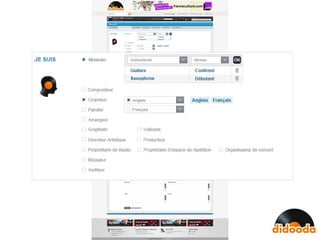 Didooda est un réseau social entièrement dédié à la musique, favorisant la collaboration entre musiciens du monde entier et la création d'une bibliothèque mondiale de sons. Il propose des outils pour la création, la protection et la commercialisation de morceaux, tout en facilitant la rencontre entre divers acteurs de l'écosystème musical. La plateforme promeut des pratiques de partage sécurisées et utilise des licences Creative Commons pour encadrer l'échange musical.