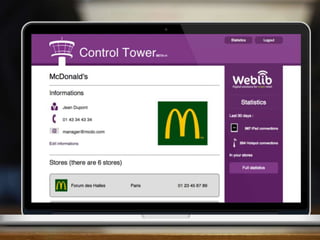 Weblib accompagne les enseignes retail dans leur digitalisation depuis 2009, proposant des solutions clés en main comme des applications, du conseil en stratégie digitale et de la maintenance. Avec une équipe de 20 spécialistes, la start-up équipe 200 points de vente en France et à l'international, incluant des enseignes comme McDonald's et BNP. Weblib offre également des outils de monitoring et de gestion des iPads pour assurer la sécurité et la personnalisation des terminaux en points de vente.