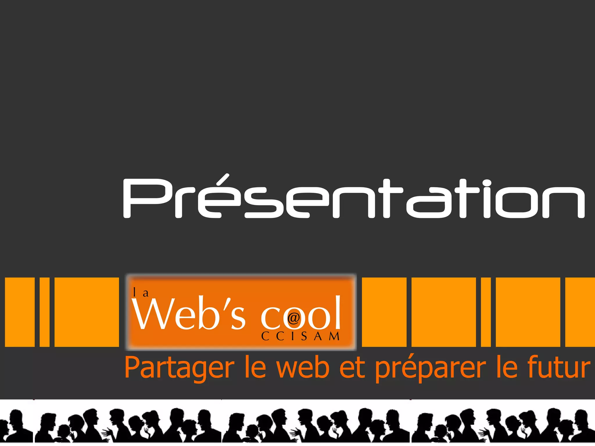 La présentation du projet 'web's cool' aborde les évolutions du web, notamment vers le web 2.0 et 3.0, et vise à promouvoir l'apprentissage collaboratif. Le programme inclut des rencontres thématiques pour échanger des bonnes pratiques et développer de nouveaux usages du web à travers divers ateliers et conférences. Des sujets variés sont traités, tels que les nouvelles méthodes de communication, le e-commerce, et la gestion des données en ligne.