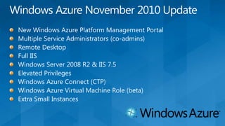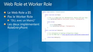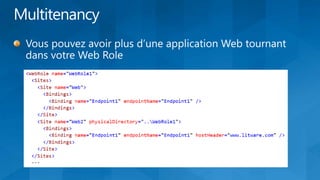 Le document décrit les différents modèles de déploiement et services des nuages hybrides, y compris le cloud public, privé et les modèles SaaS, PaaS et IaaS. Il fournit des informations sur la nécessité d'une évolutivité, une robustesse et une sécurité avancées, ainsi que sur l'automatisation et les coûts opérationnels associés. Examples d'applications et des infrastructures telles que Windows Azure sont présentées, en soulignant leur élasticité et leur capacité à gérer les charges de travail variables.