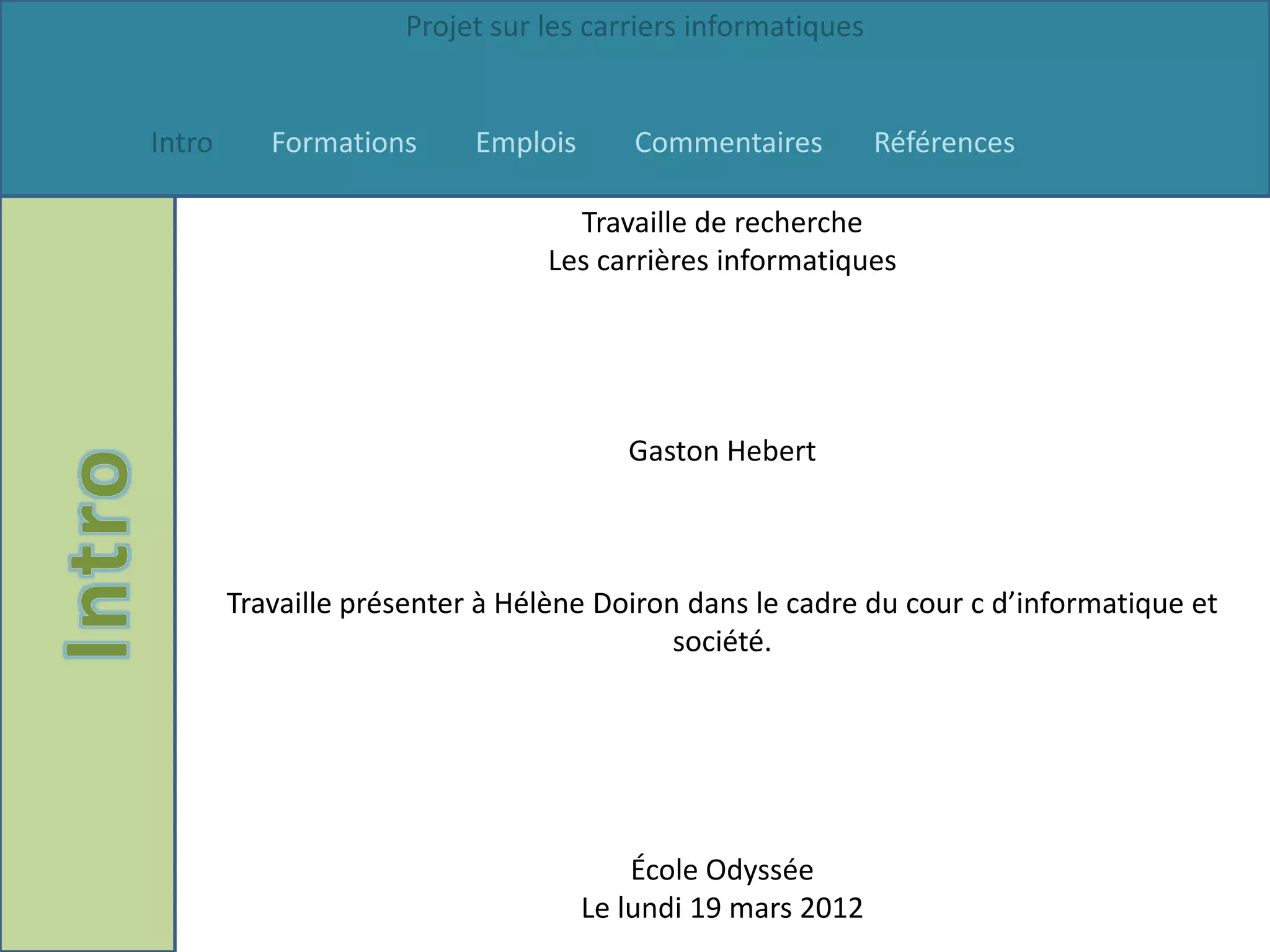 Le document présente un projet sur les carrières informatiques, détaillant différents domaines d'étude comme la production 3D, l'informatique, et le développement de jeux vidéo, ainsi que les prérequis et les institutions offrant ces programmes. Les différentes carrières mentionnées incluent animateur ordinateur, développeur web, informaticien, et ingénieur en logiciel, avec une fourchette de salaires allant de 25 000 à 120 000 $ par an. L'auteur exprime son manque d'intérêt pour plusieurs de ces carrières, soulignant divers commentaires personnels sur les exigences de chaque programme.