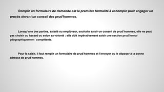 Engager un procès devant un conseil de prud'hommes nécessite de remplir un formulaire et de saisir la section géographiquement compétente. La procédure ordinaire comprend une tentative de conciliation suivie d'une phase contentieuse si la conciliation échoue, tandis que la procédure extraordinaire ne nécessite pas cette étape préliminaire. Les litiges d'une nature urgente ou spécifique peuvent être traités directement dans une phase contentieuse sans conciliation préalable.