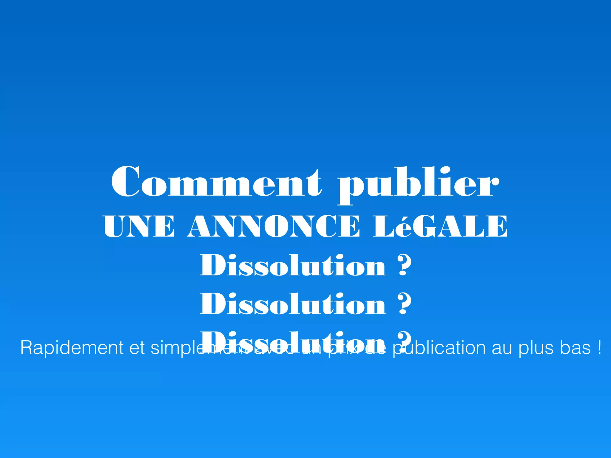 Le document explique comment publier une annonce légale pour une dissolution de manière rapide et simple, tout en offrant un prix de publication compétitif. Il invite à utiliser un service en ligne pour rédiger et publier l'annonce directement sur un journal officiel. Des réductions de prix allant jusqu'à 40% sont également mentionnées.