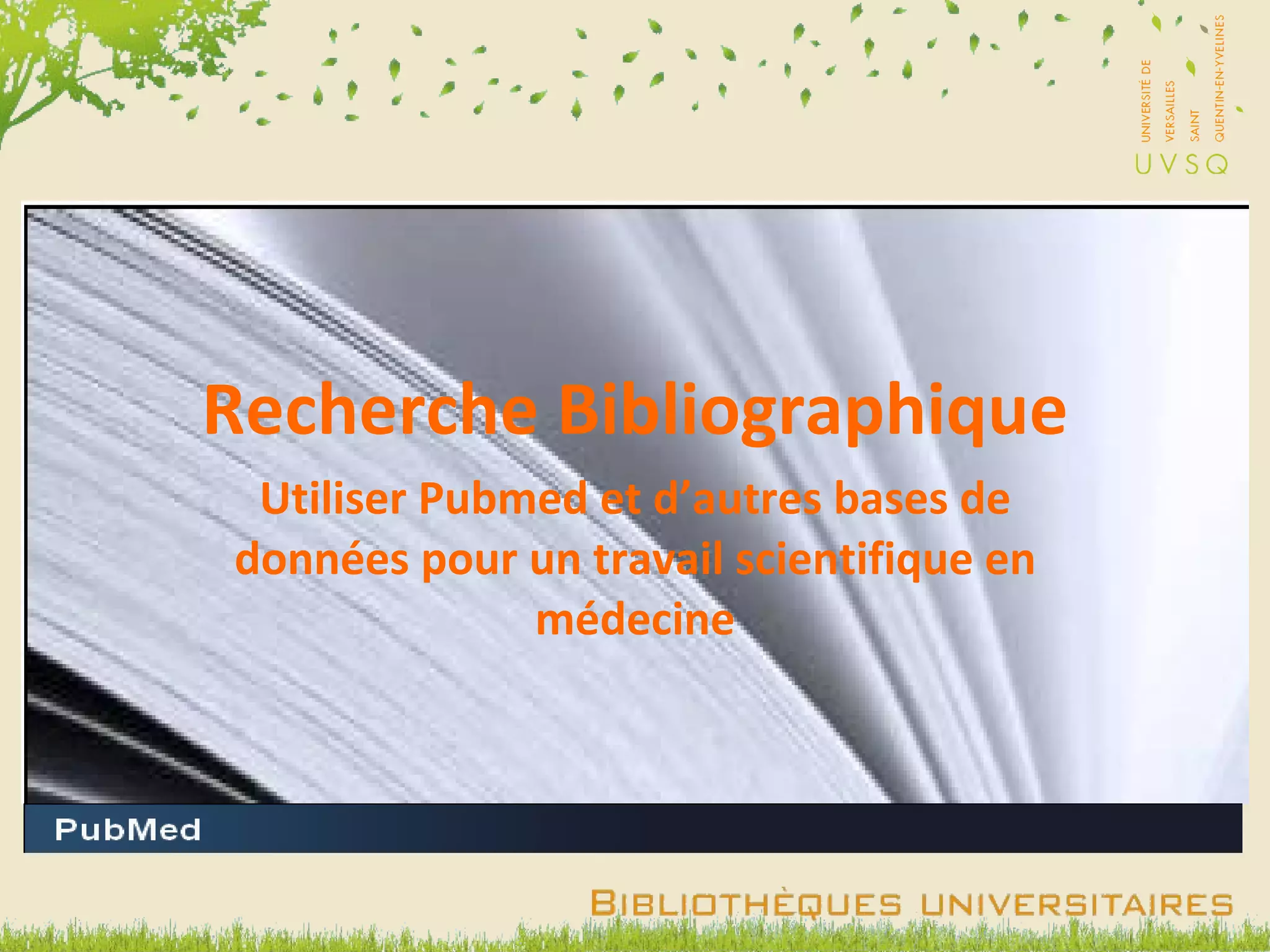 Le document traite de l'utilisation de PubMed et d'autres bases de données pour la recherche bibliographique en médecine, en détaillant les étapes essentielles pour formuler une recherche efficace. Il souligne l'importance de choisir un sujet précis, de définir des mots-clés à l'aide du thésaurus MeSH, et de syntaxer la recherche en utilisant des opérateurs logiques. En outre, il mentionne d'autres ressources utiles comme la BDSP et la Cochrane Library pour élargir les recherches.
