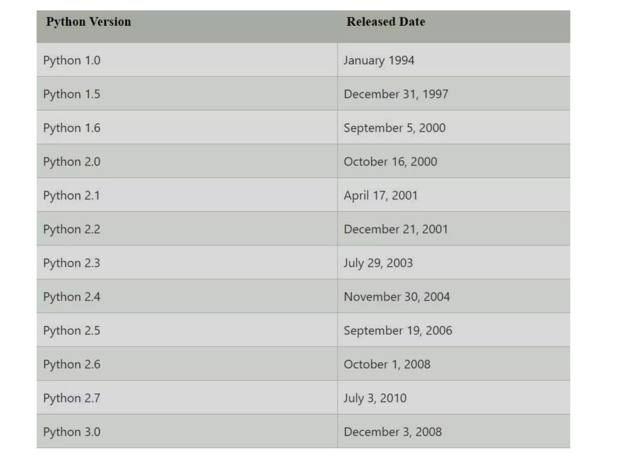 Key features including easy learning curve, extensibility, large standard libraries, and integration capabilities.Development history of Python from its creation in the late 1980s to current updates and versions.