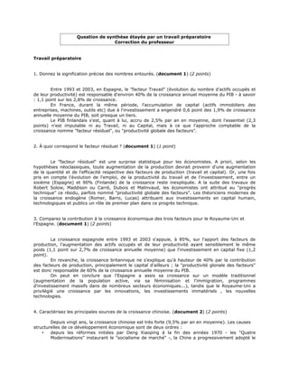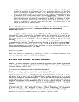 Entre 1993 et 2003, la croissance économique en Espagne était largement due au facteur travail, tandis qu'en France, l'accumulation de capital a contribué à une part plus faible de la croissance. La croissance britannique repose davantage sur la productivité résiduelle, indiquant une différence dans les approches de croissance entre les pays. En Chine, les réformes économiques et un investissement fort dans les infrastructures et la recherche ont favorisé une croissance majeure, transitionnant vers une économie plus innovante.