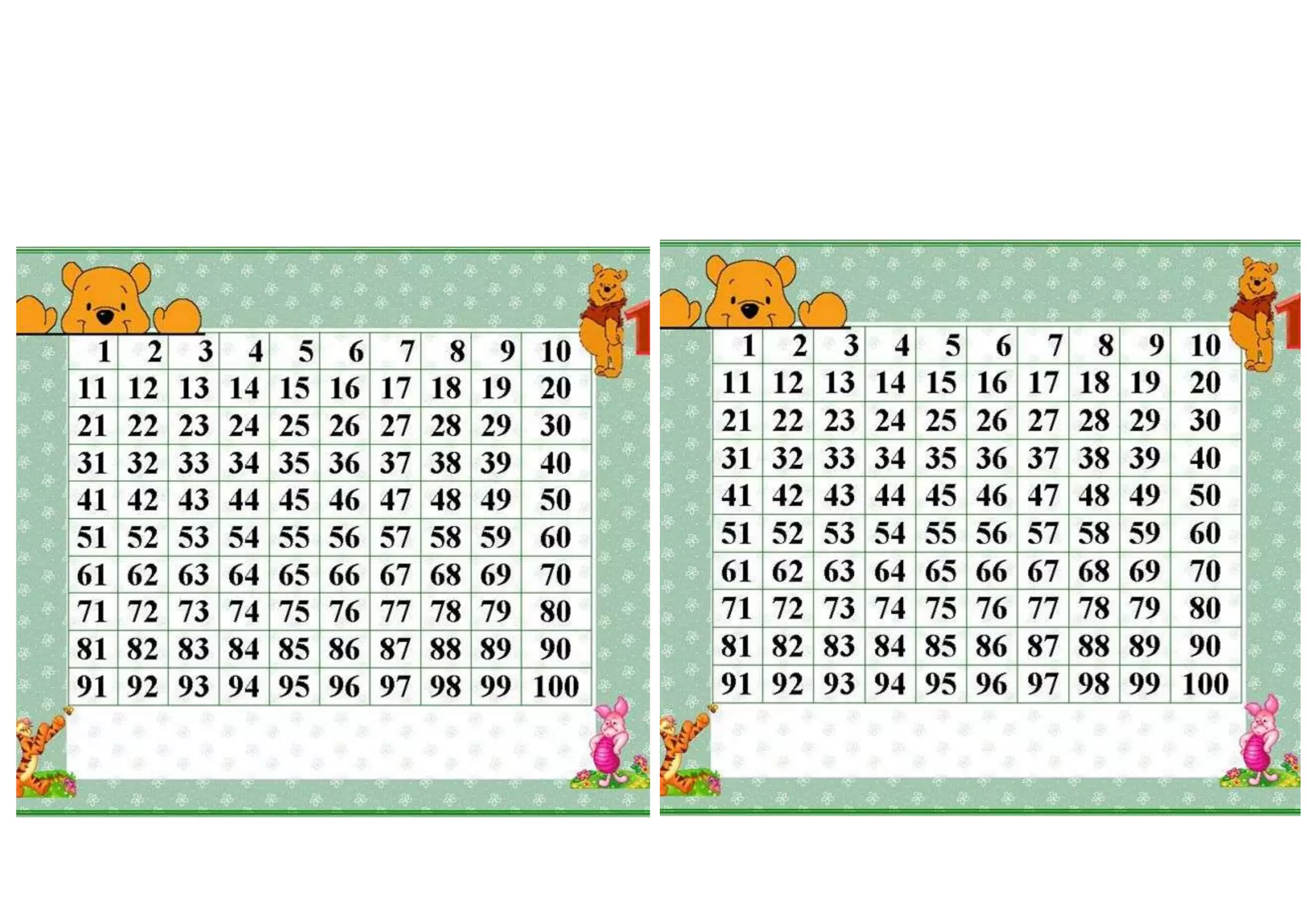 Tabela de números de 1 a 100 DOCX