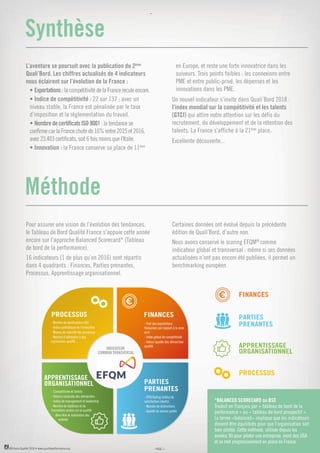 Le tableau de bord qualité 2018 de France Qualité évalue la performance de la France par rapport à ses voisins européens, soulignant une baisse continue de la compétitivité et des certificats ISO. La France se classe 9ème en termes de performance globale avec un score EFQM de 650 sur 1000, affichant un potentiel d'amélioration de 23%. Les résultats montrent également une baisse des exportations et une nécessité d'améliorer les connexions entre PME et entre le secteur public et privé.
