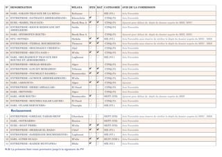 La liste provisoire des entreprises qualifiées et classifiées suite à une réunion du ministère des Travaux publics en Algérie du 29 septembre 2010 présente plusieurs entreprises avec des avis favorables ou ajournés en fonction de la conformité de leurs dossiers. Les entreprises sont réparties par wilaya et catégorie, et certaines sont soumises à des vérifications ultérieures. Cette liste doit être validée par la signature d'un procès-verbal.