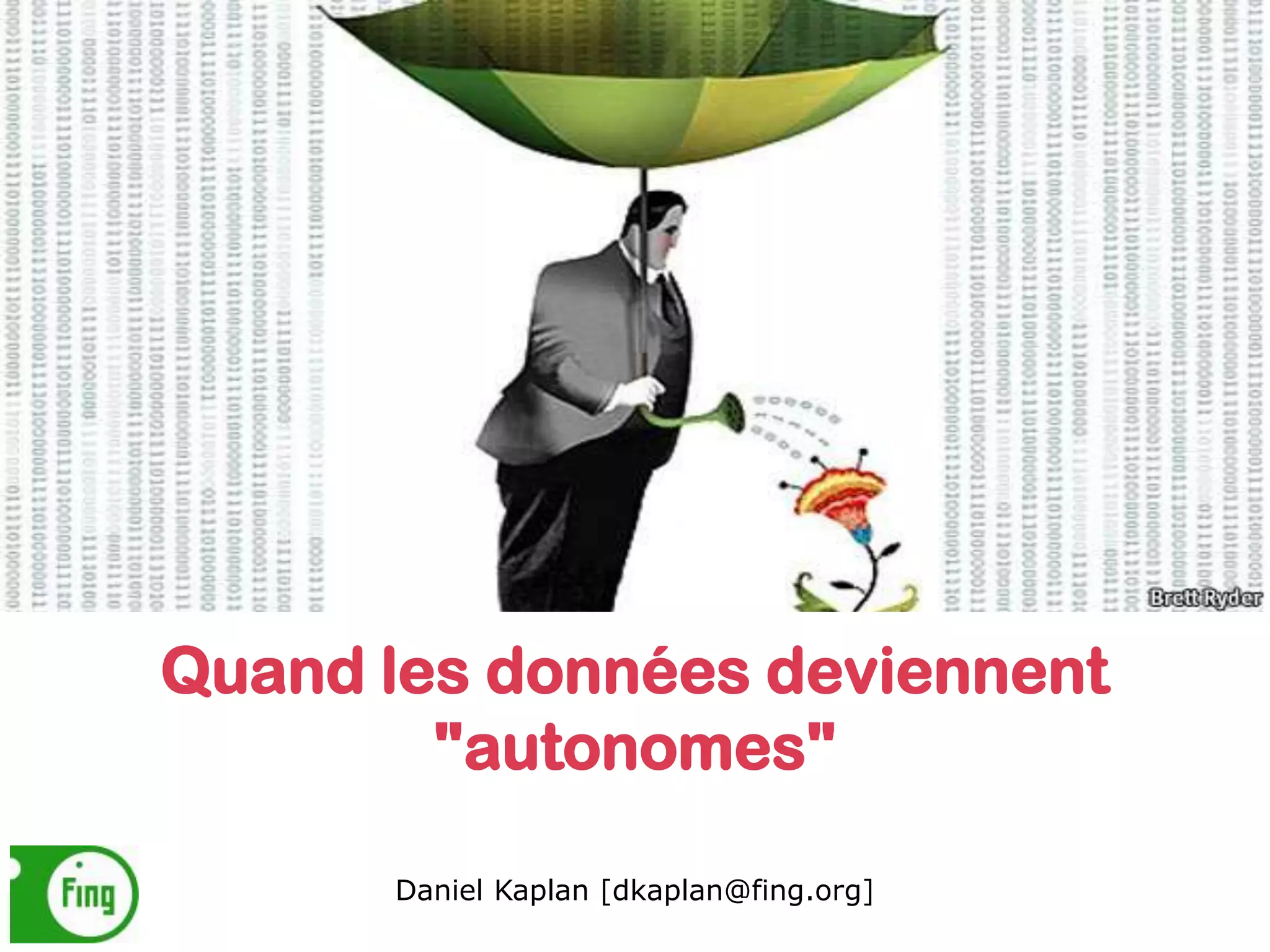 Le document explore comment les données évoluent vers une forme d'autonomie, transformant ainsi les dynamiques d'innovation et de compétition dans divers secteurs. Il souligne l'importance des infrastructures de données, de l'open data et du partage des informations à travers des écosystèmes, tout en soulevant des interrogations sur la gestion et l'exploitation des données personnelles. L'émergence d'une économie fondée sur les données impose des défis concernant l'accès, la conservation et l'utilisation des données dans un cadre éthique.