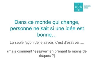 Le document décrit une expérience d'accélération d'innovation sociétale réalisée à Maizeret en 2016, visant à créer un espace d'exploration et de collaboration pour des projets d'innovation. Portée par une équipe de coaches, l'initiative a permis de rassembler des participants autour d'expériences co-créatives et d'apprentissage pratique dans divers domaines. La démarche a abouti à un événement réussi, impliquant un large public et favorisant la création de liens et de projets collectifs.