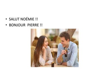 Le document présente une conversation entre deux personnes, Noémie et Pierre, sur leur routine quotidienne. Noémie se réveille à 7 heures, va au collège, fait des devoirs et passe du temps avec des amis le soir. La conversation se termine sur une question sur ce que fait Pierre après la journée de Noémie.