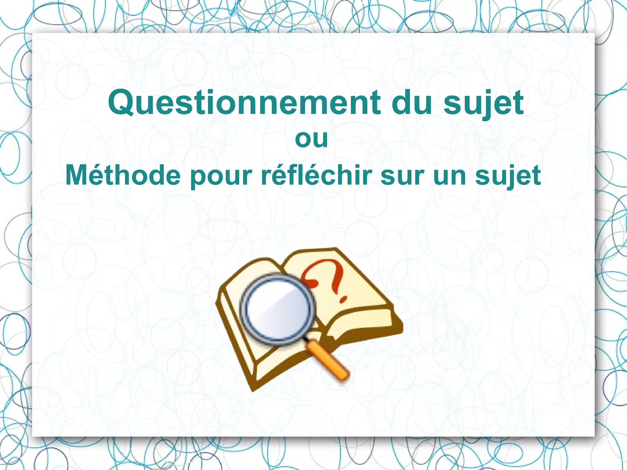 Ce document présente une méthode structurée pour réfléchir sur un sujet de recherche. Il inclut des étapes telles que la lecture attentive, la formulation de questions, et la création de mots-clés pour mieux cerner le sujet. L'objectif est de choisir un thème pertinent pour susciter un débat et répondre à une problématique sociétale.