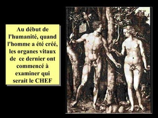Le document utilise une métaphore pour discuter du leadership en évoquant un débat entre les organes du corps humain sur qui devrait être le chef. Chaque organe présente des arguments, mais c'est finalement l'anus, après avoir causé le chaos, qui est élu comme leader, soulignant l'absurdité du pouvoir. La conclusion humoristique suggère que tout individu, peu importe sa valeur ou son statut, peut accéder à des rôles de leadership.