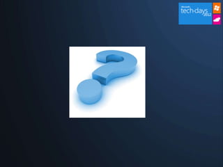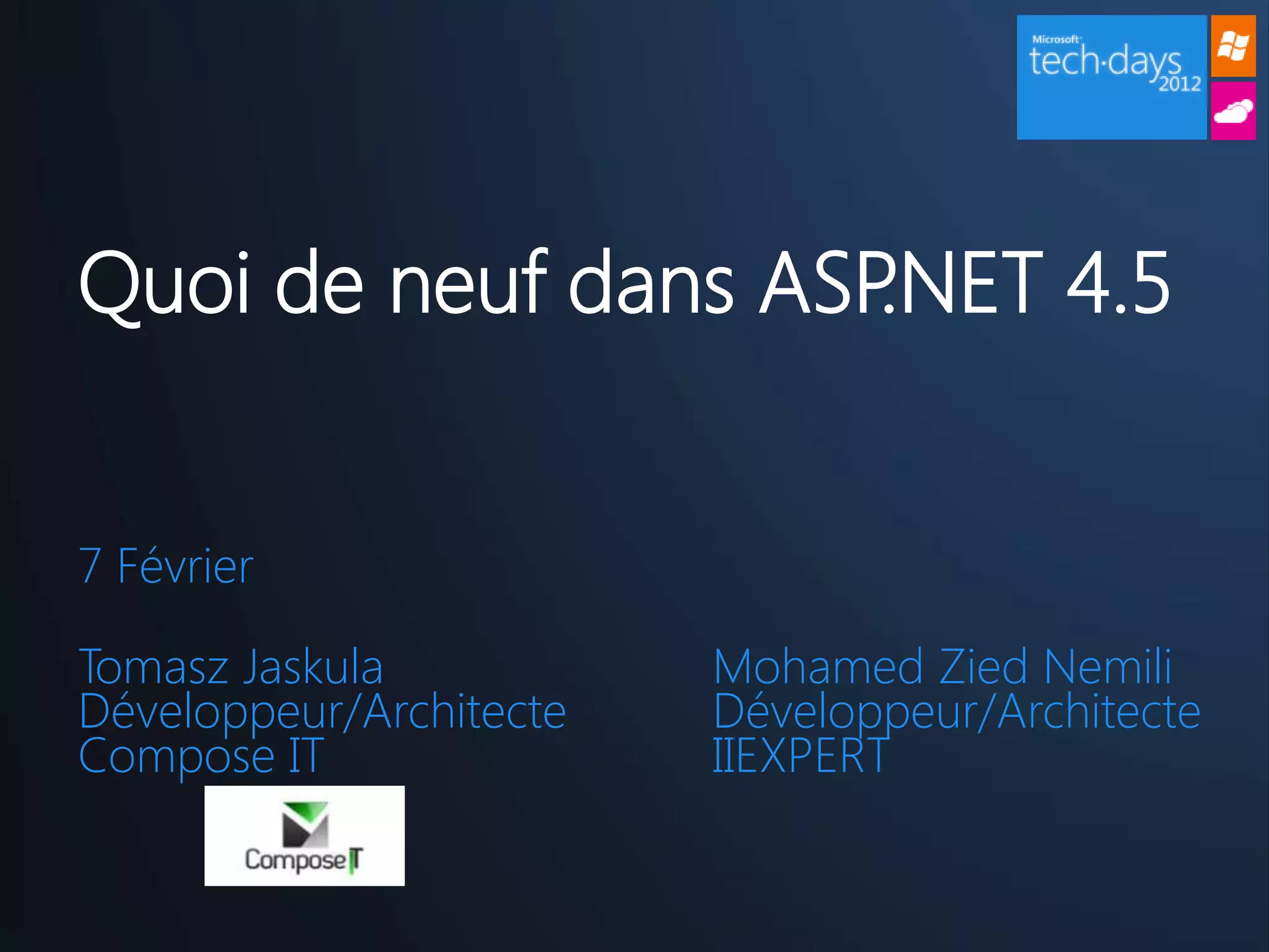 Le document présente les nouveautés d'ASP.NET 4.5 lors d'un événement à Paris, notamment des améliorations sur les contrôles de données, le model binding et la validation HTML5. Il couvre aussi les avancées d'ASP.NET Core liées à la gestion des requêtes asynchrones, la sécurité et les performances, ainsi que des fonctionnalités spécifiques pour les templates web et mobiles. Enfin, des démonstrations pratiques et des références supplémentaires sont fournies par les intervenants.