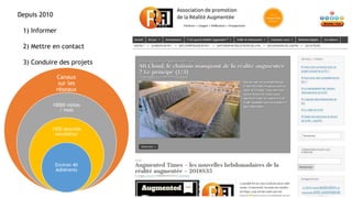Le document aborde l'utilisation de la réalité augmentée dans le secteur de la santé, en mettant en avant plusieurs applications, telles que le soutien à la rééducation et à la formation des professionnels de santé. Il mentionne également l'importance de la collaboration pour intégrer ces technologies tout en garantissant qu'elles répondent à des besoins réels. Enfin, des recommandations sont proposées pour l'implémentation réussie de projets de réalité augmentée.