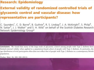 Le document présente une analyse critique de la médecine basée sur les preuves (EBM) en diabétologie, soulignant l'importance de personnaliser les soins en prenant en compte des éléments clés comme les bénéfices et les risques. Il aborde également les biais dans les études cliniques et la formation des recommandations médicales, en insistant sur la nécessité d'une validation rigoureuse. Enfin, des exemples concrets d'études et de recommandations sont discutés pour illustrer ces concepts.