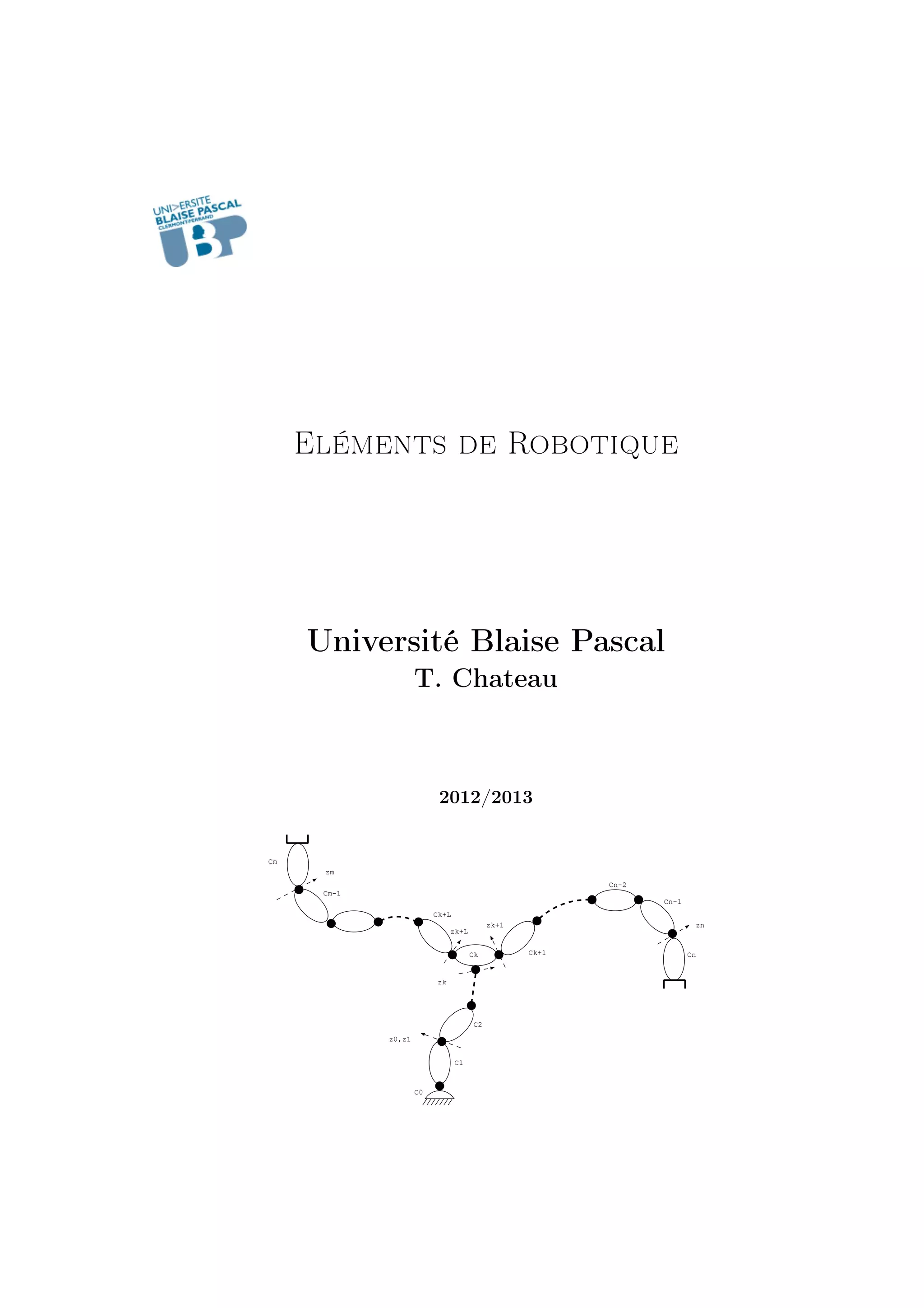Ce document présente les éléments fondamentaux de la robotique, notamment la géométrie, la cinématique et la modélisation géométrique des robots. Il aborde les transformations homogènes, la description des mouvements circulaires et des chaînes robotiques, ainsi que les méthodes de commande en position des robots. Les sections sont accompagnées d'exemples pratiques et d'illustrations pour clarifier les concepts traités.