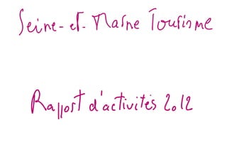 Le document présente des données clés sur l'offre touristique et la fréquentation dans le département de Seine-et-Marne en 2012, incluant des informations sur les hébergements, les sites touristiques et le développement d'outils. Il décrit également les actions d'ingénierie touristique, la formation des acteurs du secteur et le développement d'une politique touristique durable et concertée. Finalement, il met en lumière des initiatives pour améliorer l'accueil et l'accessibilité, ainsi que des stratégies de promotion par le biais d'événements et de réseaux.