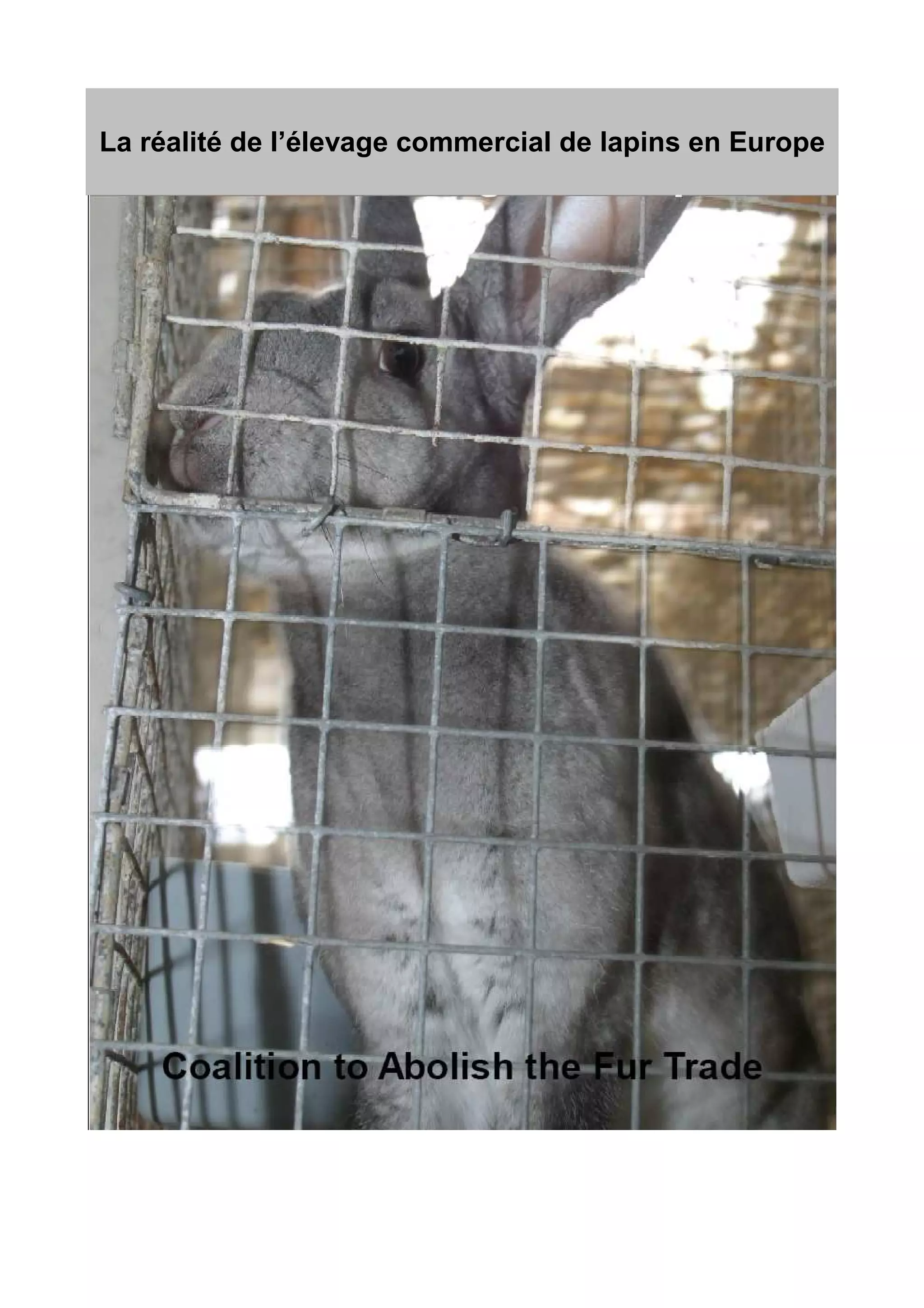 Le document examine l'élevage commercial de lapins en Europe, mettant en évidence l'essor de l'industrie de la fourrure de lapin, malgré un manque de connaissances du public. À travers une enquête menée par la CAFT dans plusieurs pays européens, il est révélé que l'industrie est principalement concentrée en France, en Espagne et en Italie, avec des méthodes d'élevage intensif et des préoccupations éthiques concernant le bien-être animal. Le texte décrit également différentes races de lapins élevées pour la fourrure et pour la viande, ainsi que les problèmes liés à leurs conditions d'élevage.