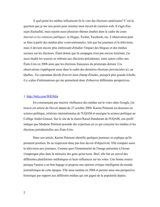 Le rapport de curation web de Catherine Coupal-Schmid examine l'influence des médias sur le vote des électeurs, en se concentrant sur les campagnes américaines et françaises récentes. Il analyse divers articles et sources qui mettent en lumière le rôle des médias traditionnels et sociaux dans les élections, en soulignant leur impact significatif sur les opinions des électeurs. Ce travail relie également des perspectives historiques et contemporaines sur la médiatisation des élections.