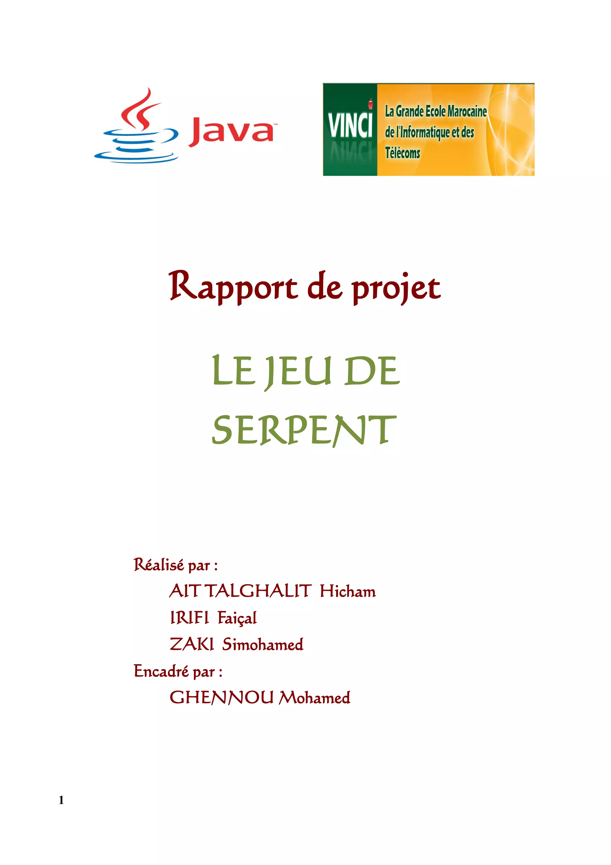 Le rapport présente le développement d'un jeu de serpent en Java, en utilisant la bibliothèque Swing pour créer une interface graphique. Les différentes classes et logiques du jeu sont expliquées, incluant le contrôle du serpent, le placement des pommes et la gestion des collisions. Le projet illustre à la fois l'apprentissage de la programmation Java et la gestion de projets en groupe.