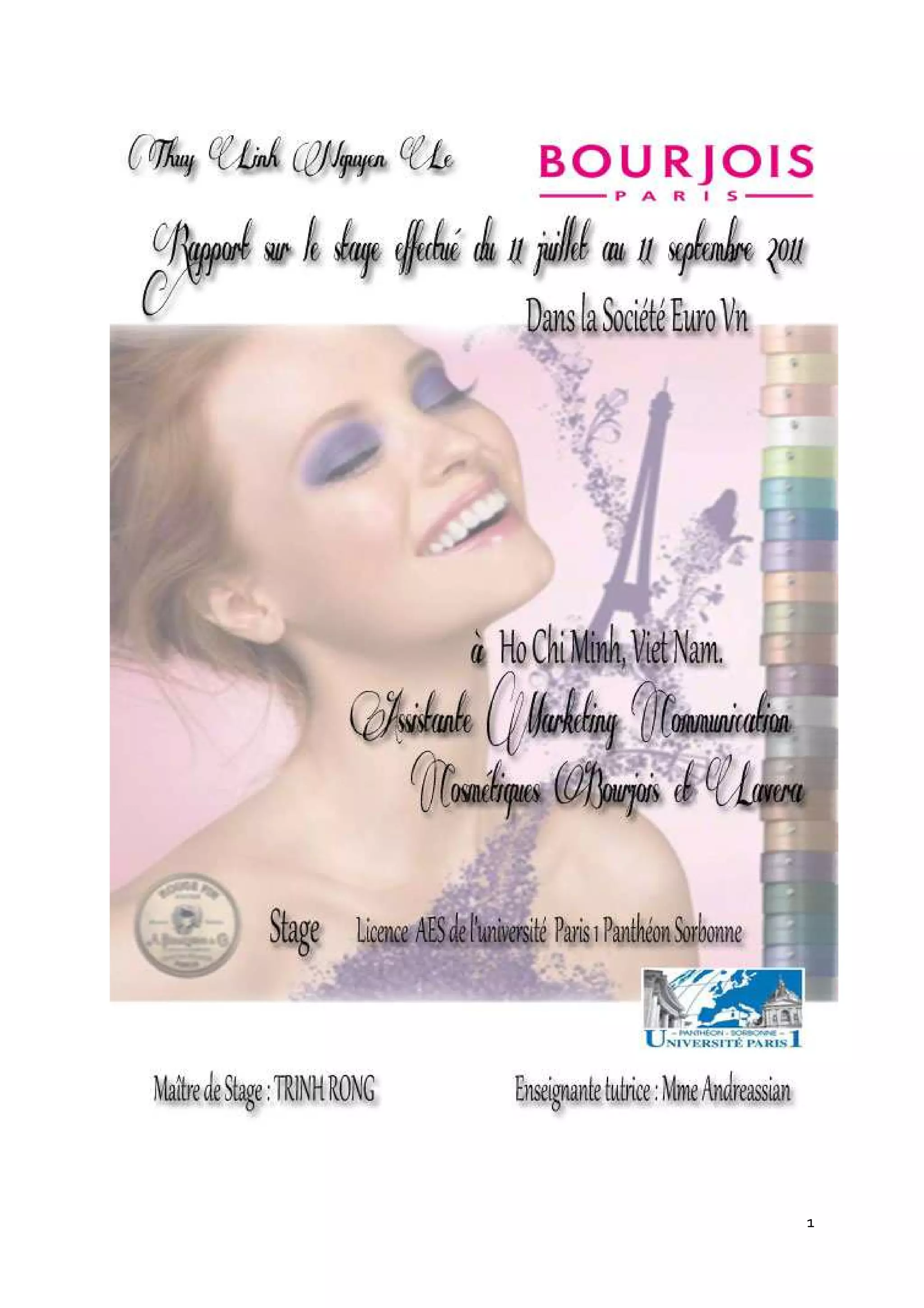 Ce document est un rapport de stage sur l’expérience professionnelle acquise au sein de la société Euro VN, spécialisée dans la distribution de cosmétiques au Vietnam. Il met en lumière le contexte économique florissant du pays, l'essor du marché des cosmétiques et les stratégies adoptées par la marque Bourjois pour se positionner sur ce marché. Le rapport détaille les missions effectuées durant le stage et les enseignements tirés concernant les attentes des consommatrices vietnamiennes.