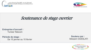 Le document présente le rapport de stage de l'étudiant au sein de Tunisie Telecom, couvrant la période du 15 janvier au 10 février 2018. Il détaille les tâches effectuées dans différentes unités, notamment la construction de lignes téléphoniques et la gestion des abonnés via divers logiciels. La conclusion souligne l'importance de ce stage pour l'adaptation de l'étudiant au milieu professionnel des télécommunications.